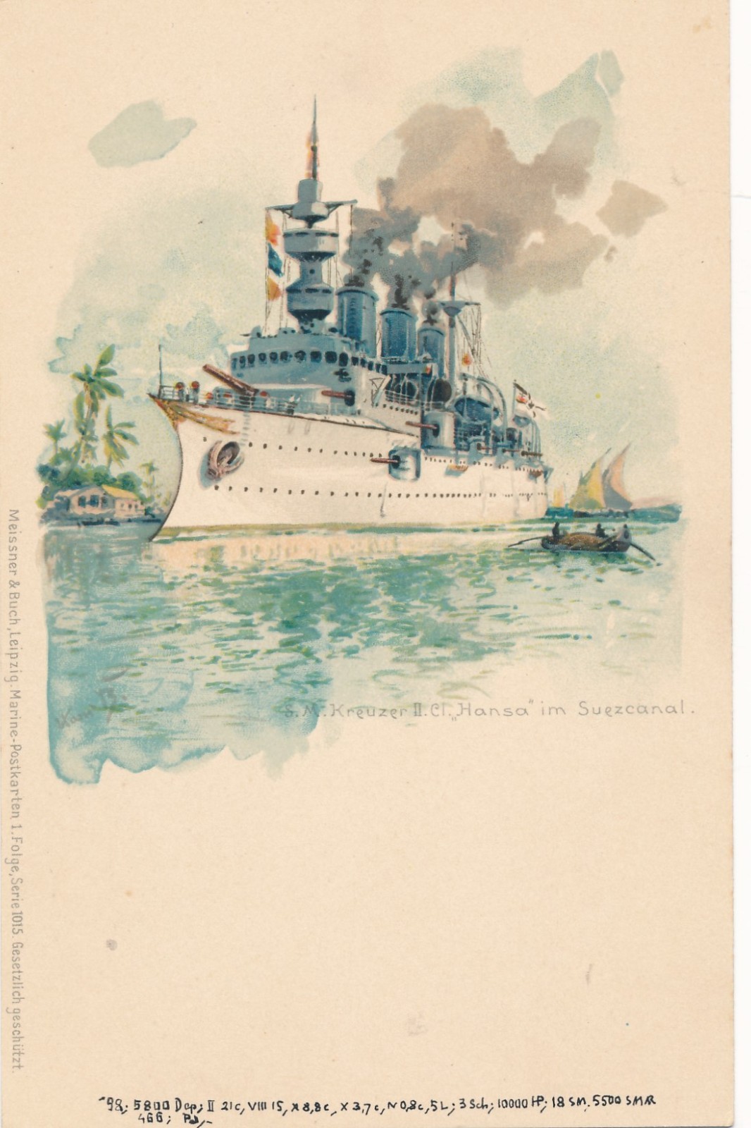 Litho - Karte vom S.M. Kreuzer ii Cl. Hansa Suezcanal Ansichtskarte (15789)