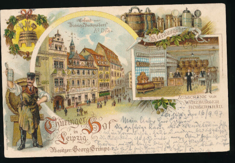 Litho - Karte vom Thüringer - Hof in Leipzig Sachsen (5427)