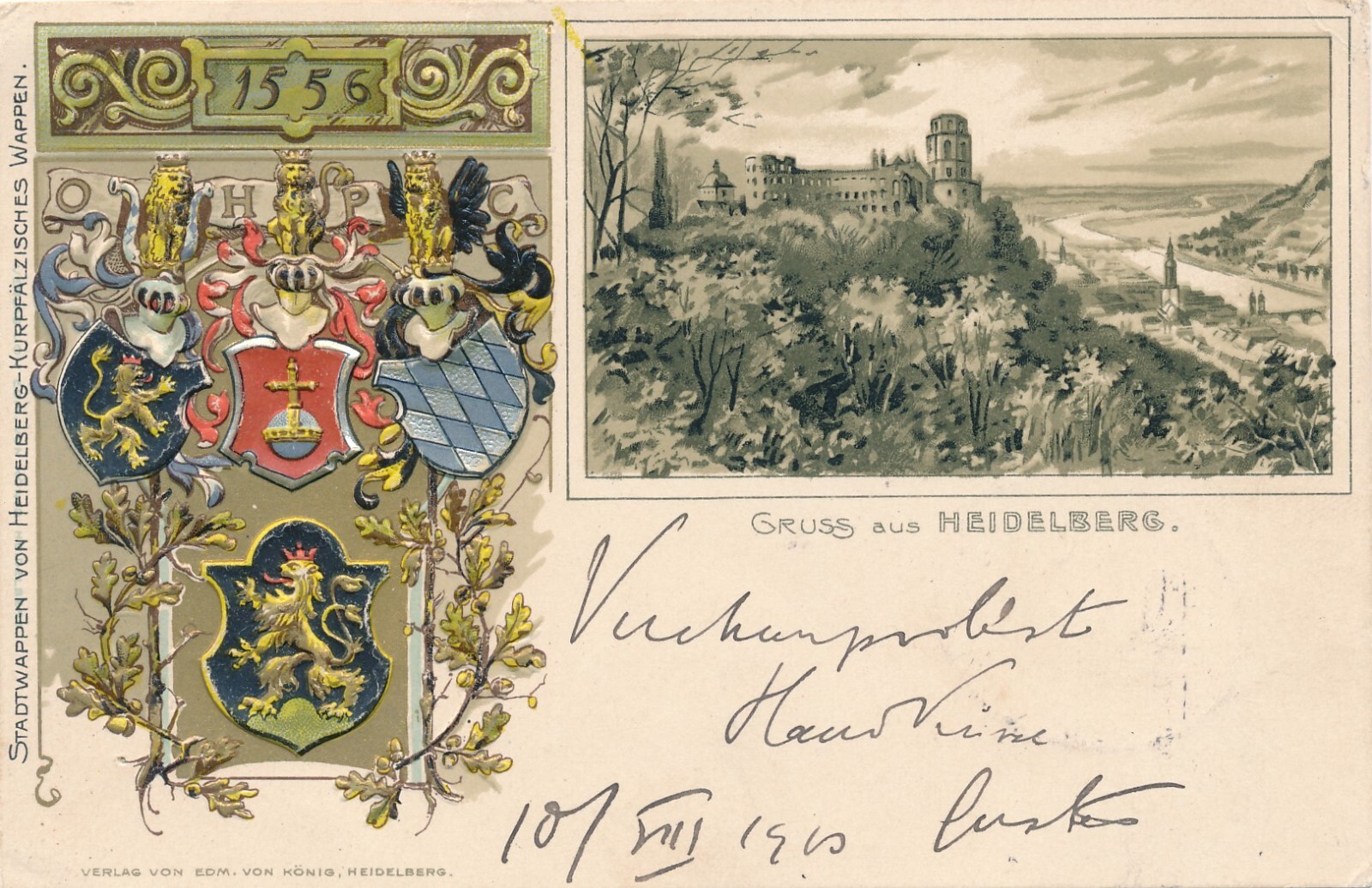 Litho - Präge - Karte gruss aus Heidelberg Baden - Württemberg (6617)