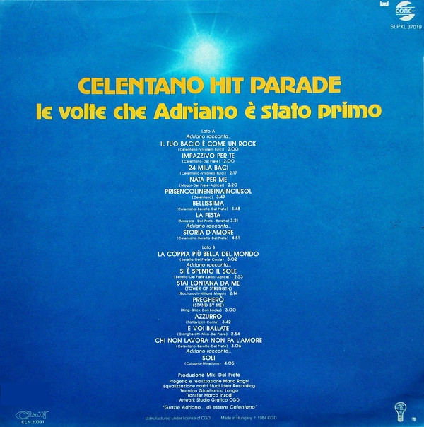 LP / Adriano Celentano – Celentano Hit Parade - Le Volte Che Adriano È Arrivato Primo