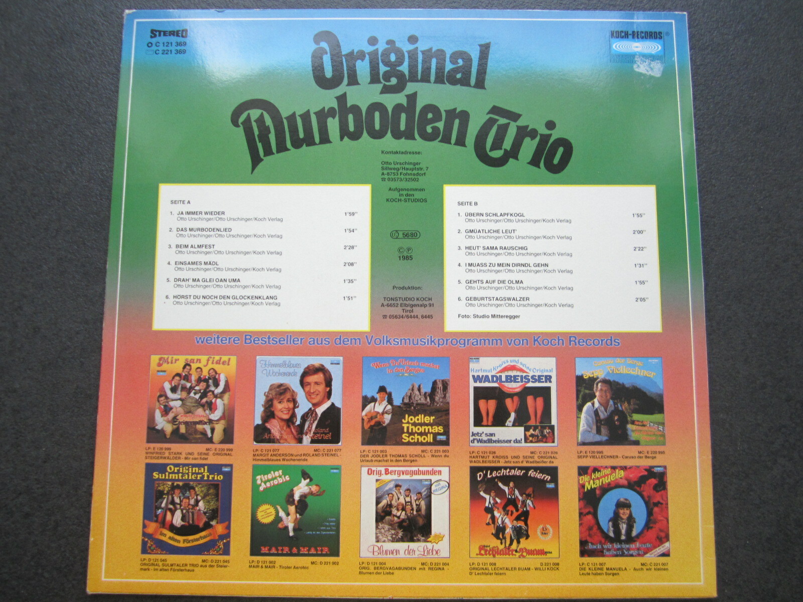 LP / Das Orig. Murboden Trio Spielt auf / Koch REC. - Austria Pressung /