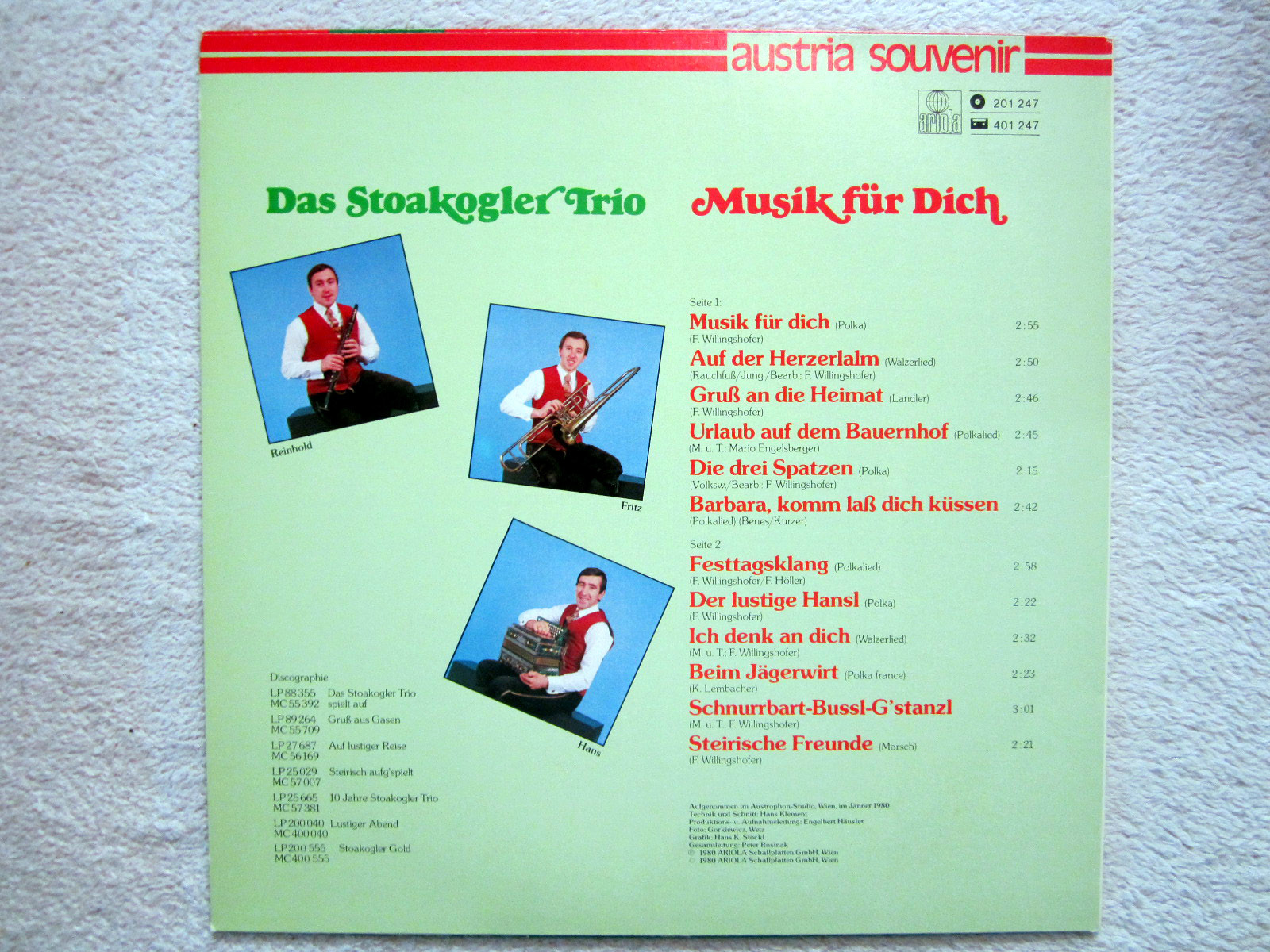 LP / DAS STOAKOGLER TRIO / AUSTRIA / RARITÄT / 1980 / MUSIK FÜR DICH /
