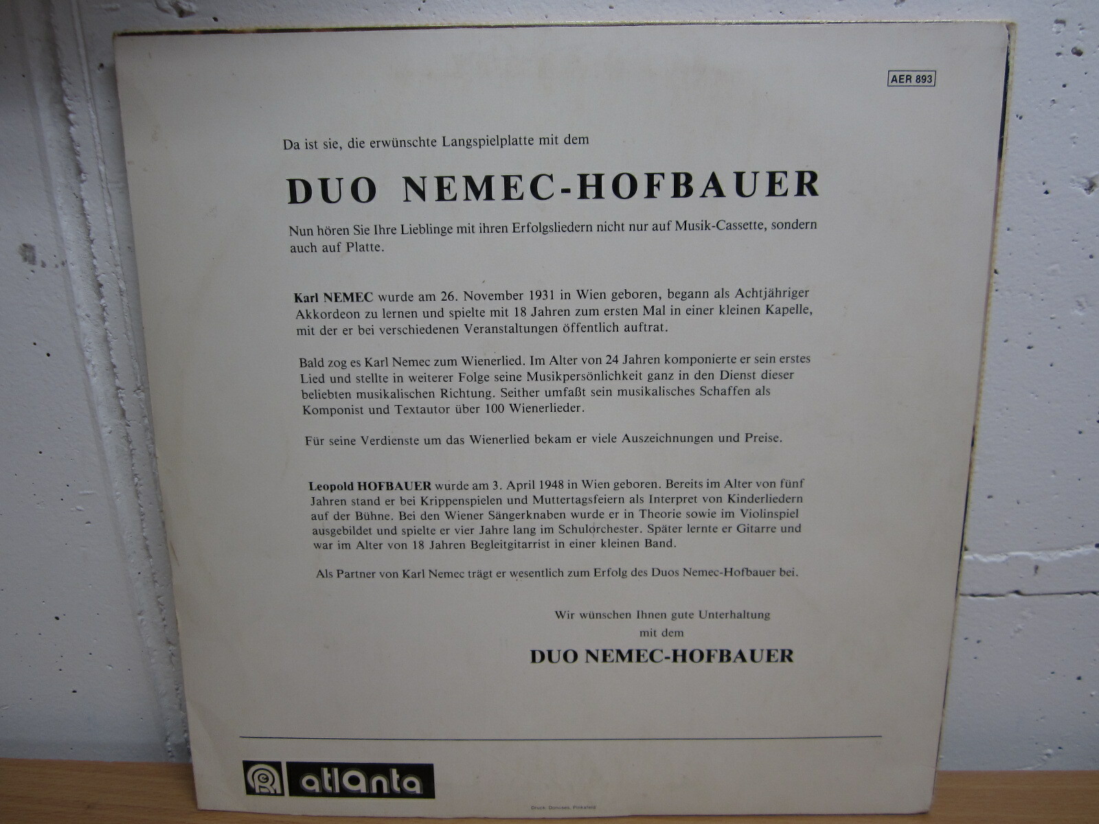 LP / DUO NEMEC-HOFBAUER - MIT AUTOGRAMM / RARITÄT / ATALANTA REC /