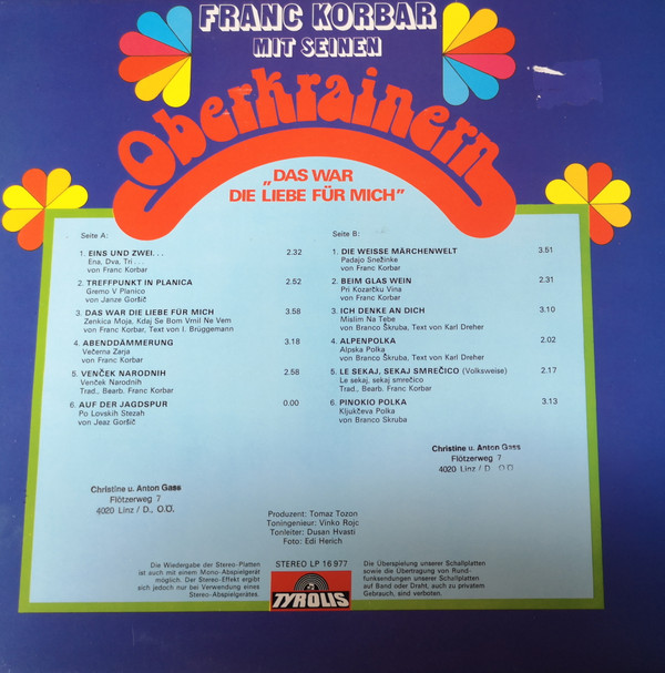 LP / Franc Korbar Mit Seinen Oberkrainern – Das War Die Liebe Für Mich