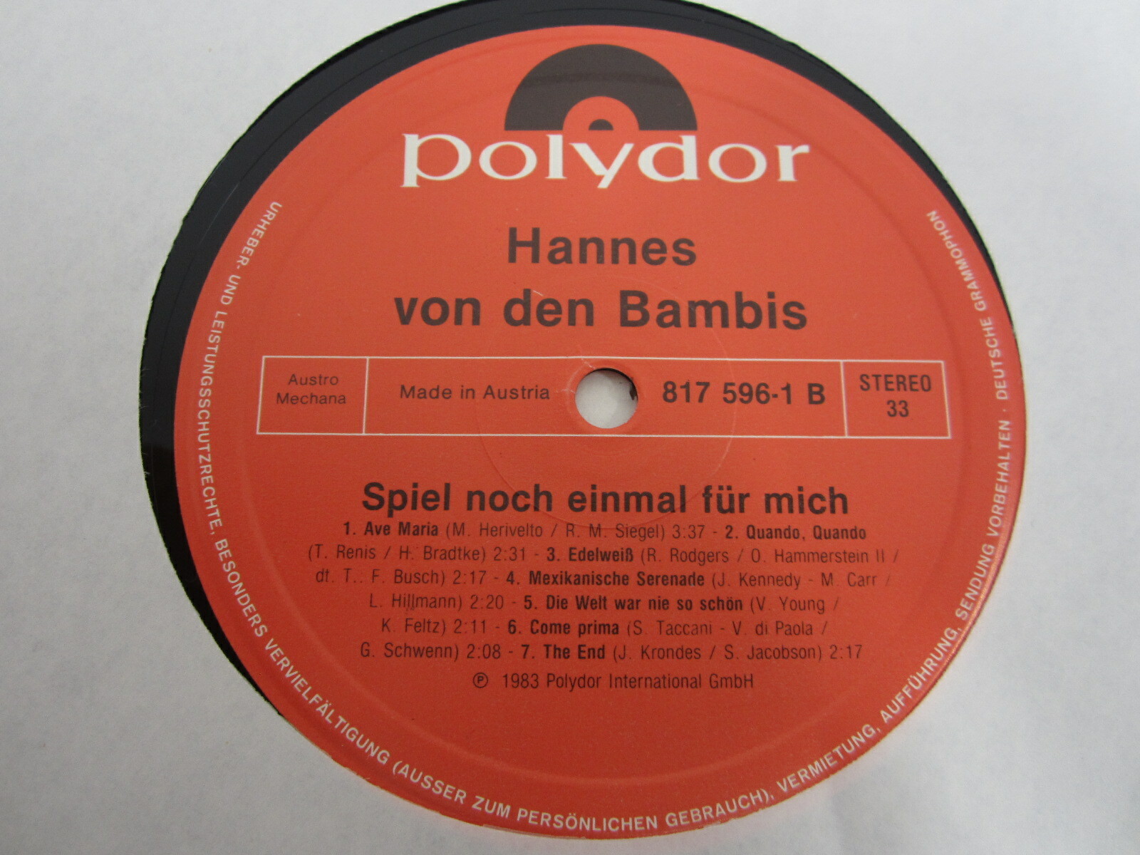 LP / HANNES VON DEN BAMBIS -MIT AUTOGRAMM / AUSTRIA / RARITÄT /