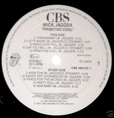 LP / MICK JAGGER / PRIMITIVE COOL / CBS / RARITÄT /
