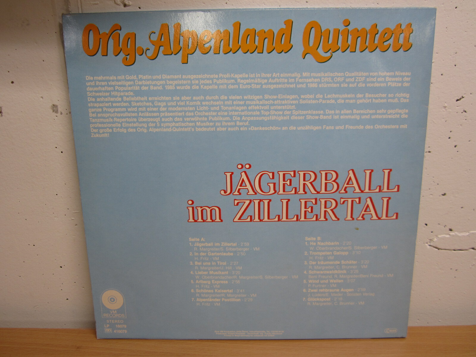 LP / Orig. Alpenland Quintett ?– Jägerball Im Zillertal / MIT AUTOGRAMM / VM