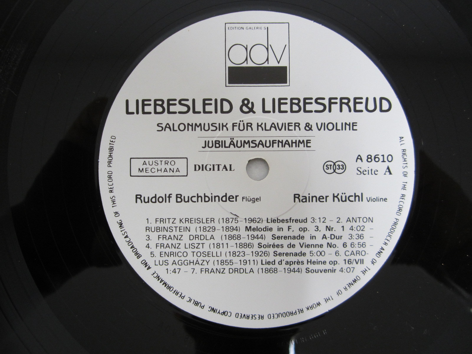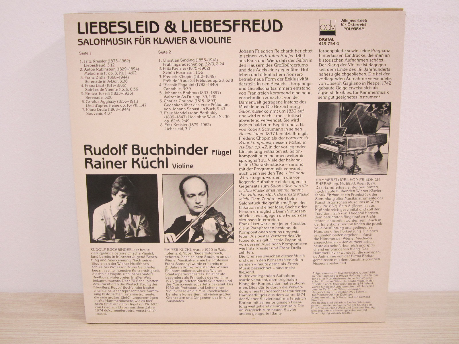 LP / RUDOLF BUCHBINDER & RAINER KÜCHL / LIEBESLEID & LIEBESFREUD / AUSTRIA /