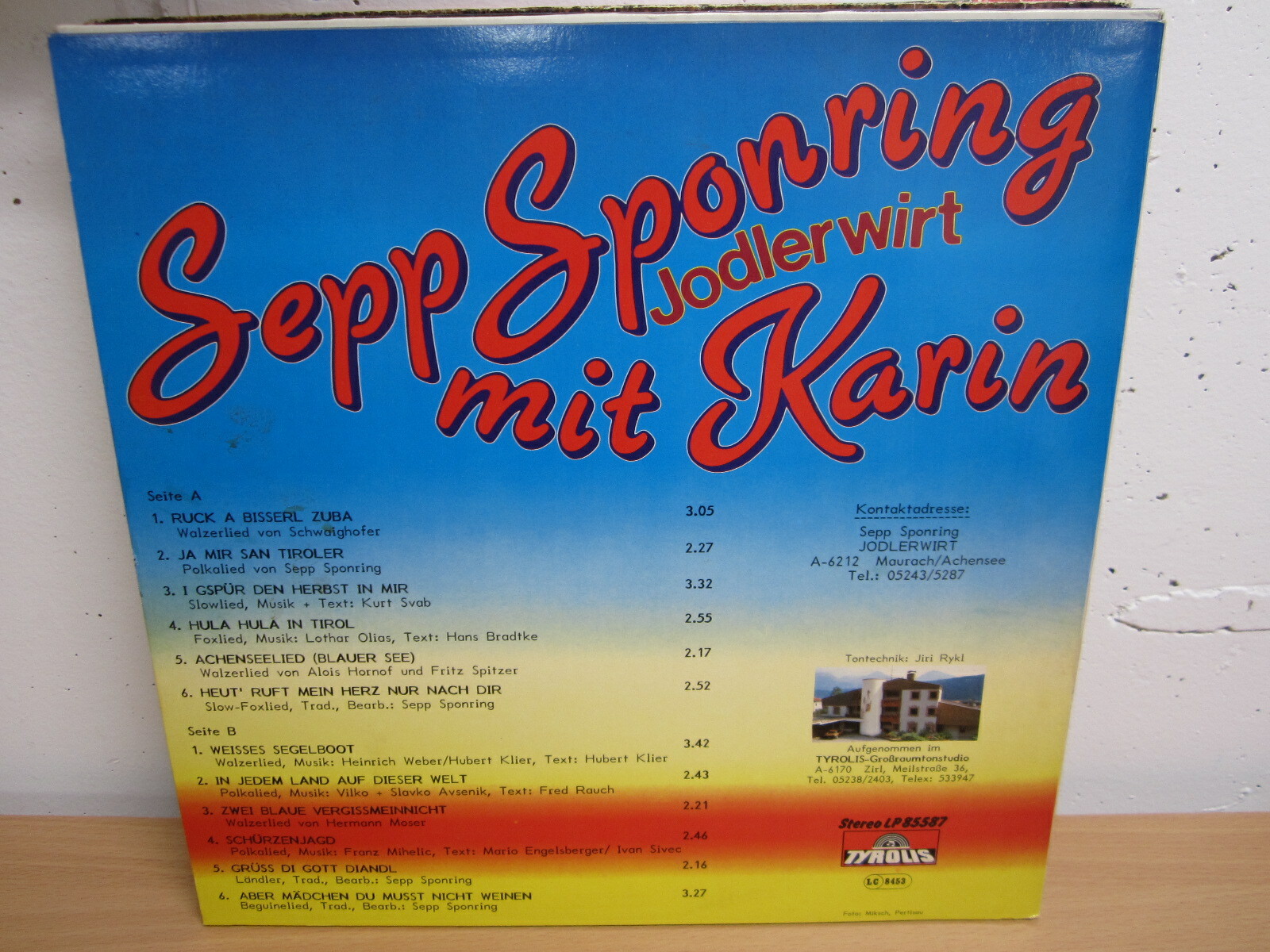 LP / Sepp Sponring mit Karin --Jodelwirt / Tyrolis Rec. Austria / RAR /