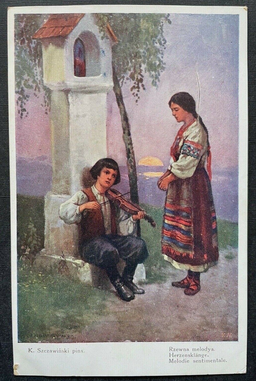 Malerei Herzensklänge K.Szczawinski Musiker Geige Frau Bildstock Sonne 400289 A