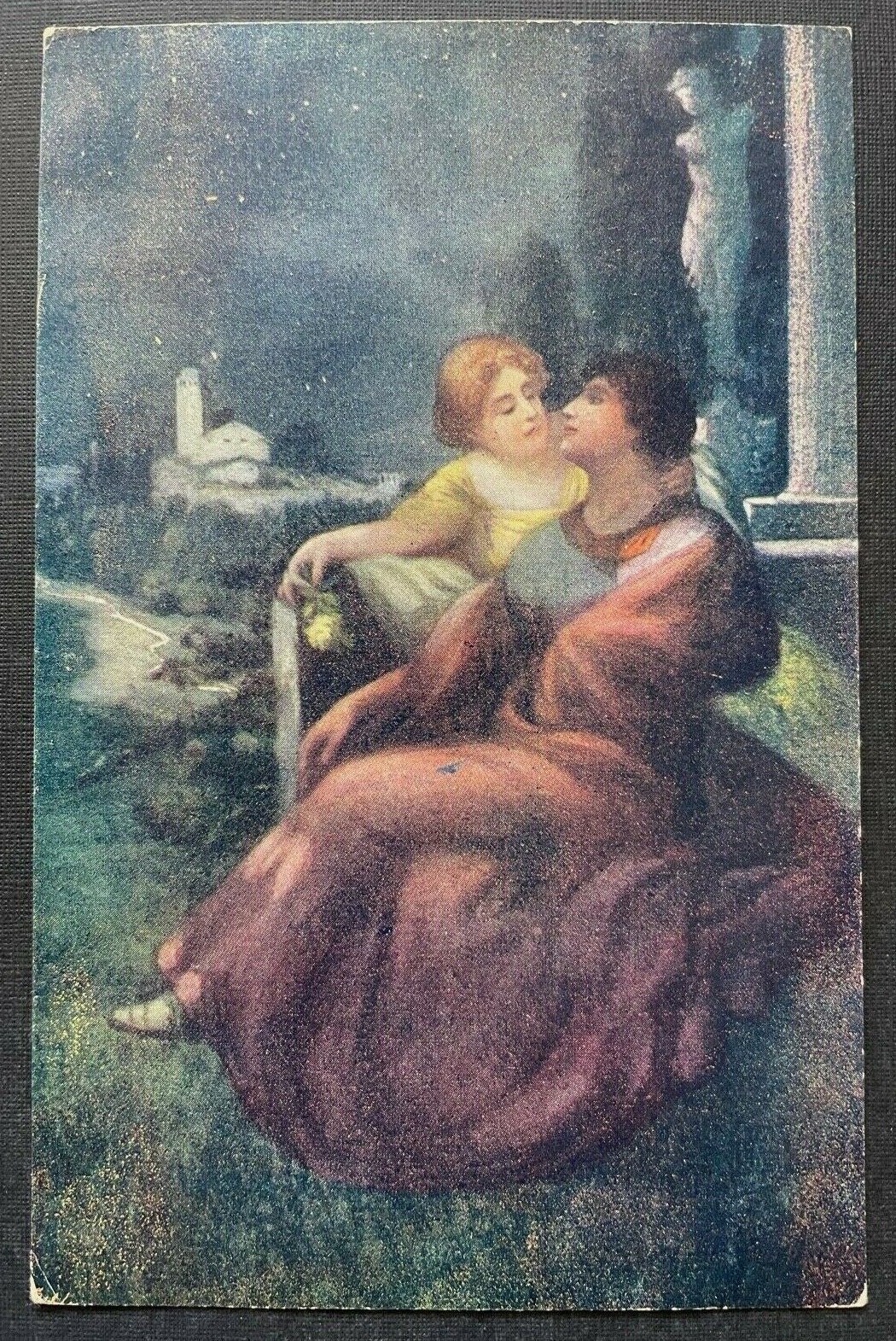 Malerei Liebeszauber Mann Frau Paar Sofa Kleid Umhang Statue Nacht 410795 TH G
