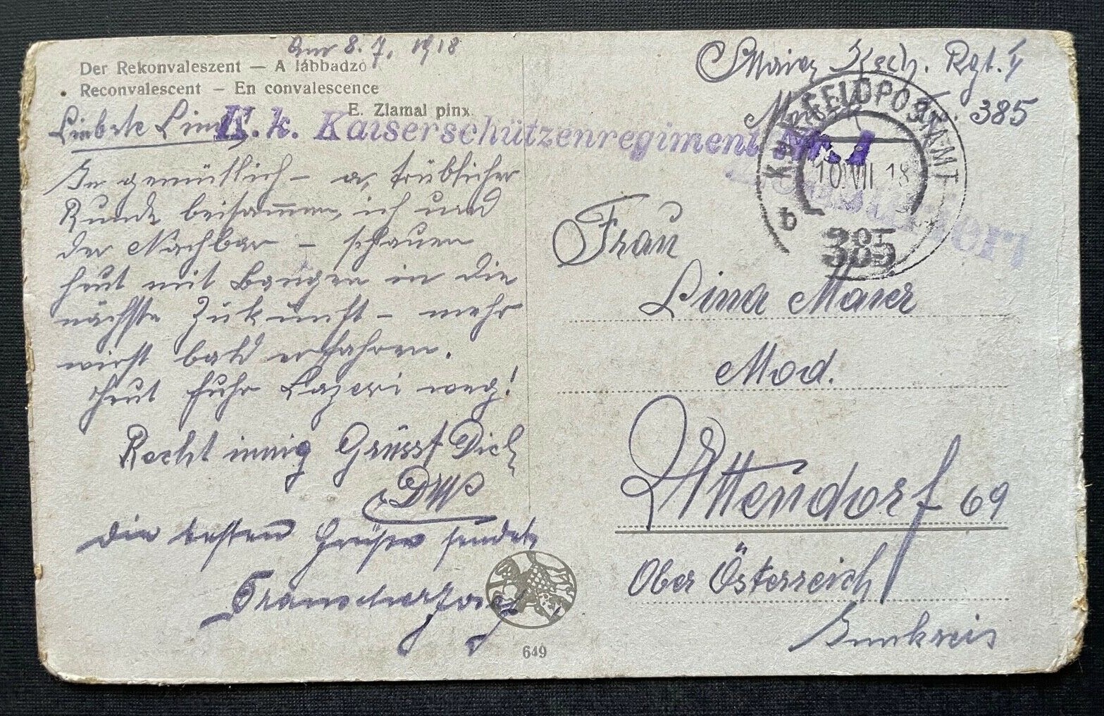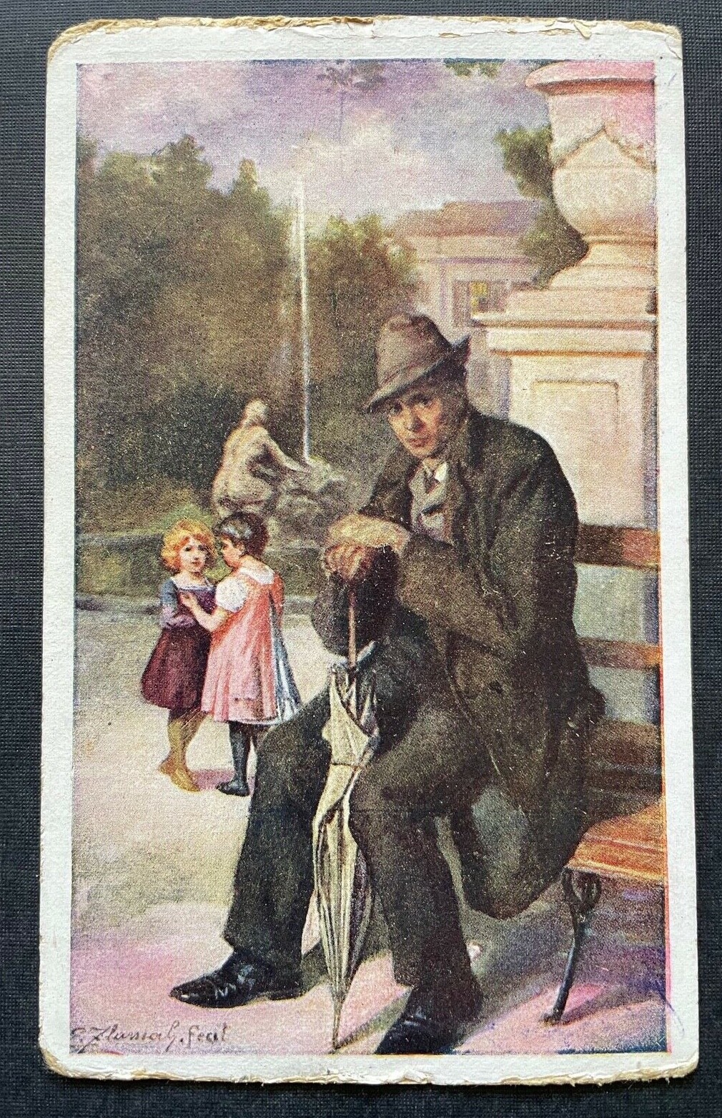 Malerei Rekonvaleszent Mann Krankheit Mantel Hut Kinder Park Brunnen 400295 TH A