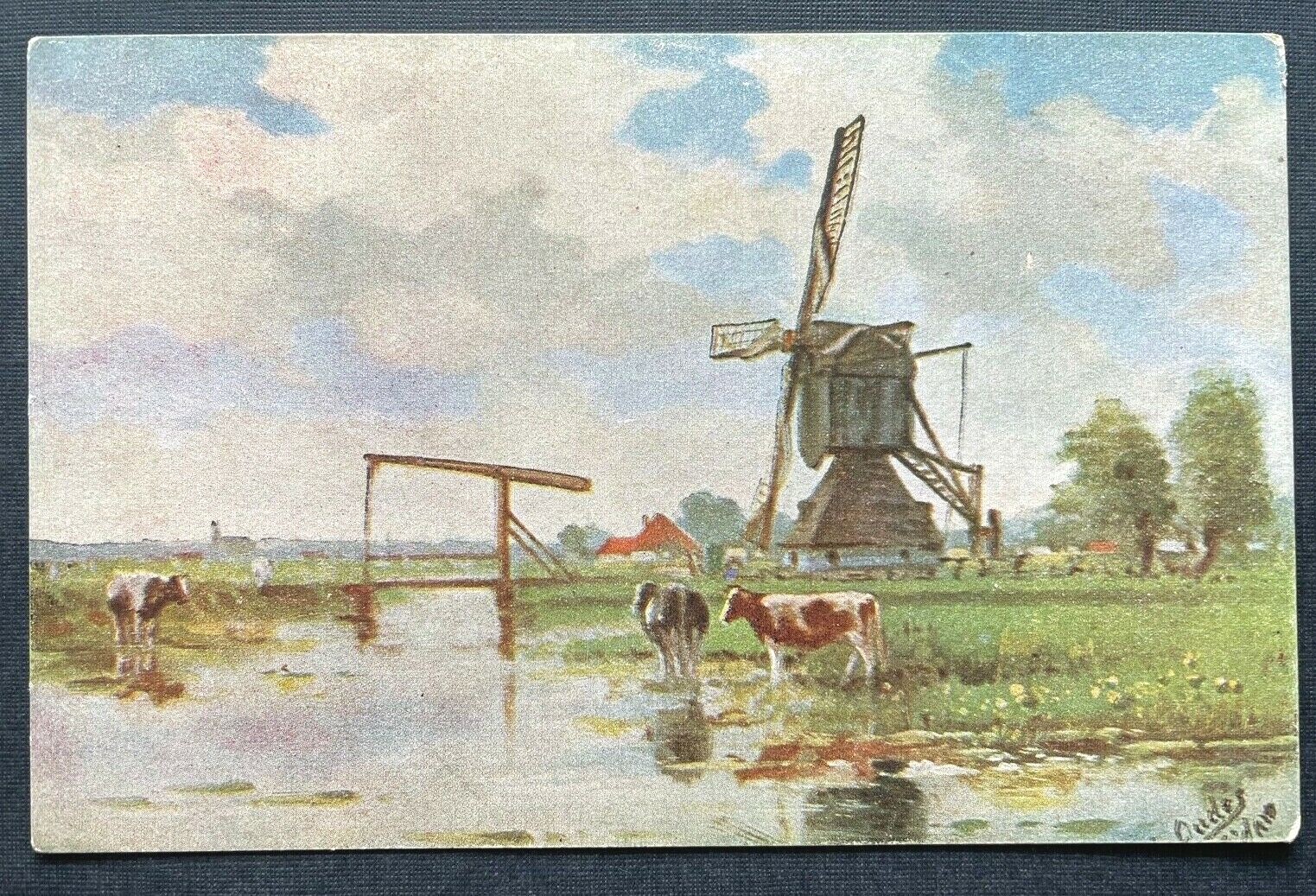 Malerei Windmühle Feld Kühe Bauernhof Haus Landschaft Natur 402695 TH C