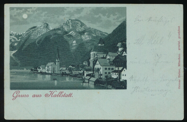 Mondschein - Karte gruss aus Hallstatt Oberösterreich (2287)