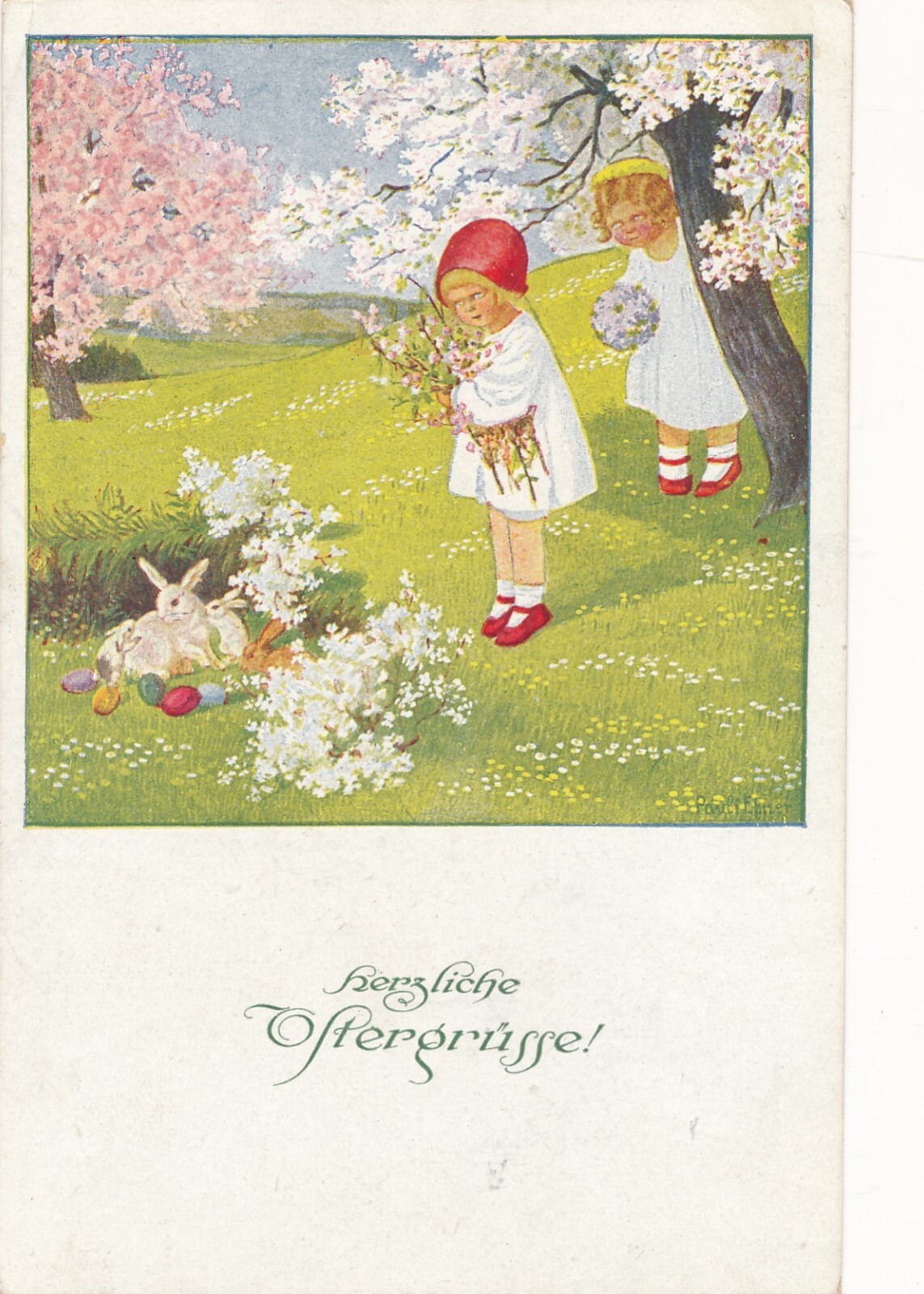 Motiv - Karte Frohe Ostern zwei Kinder Ansichtskarte (13255)