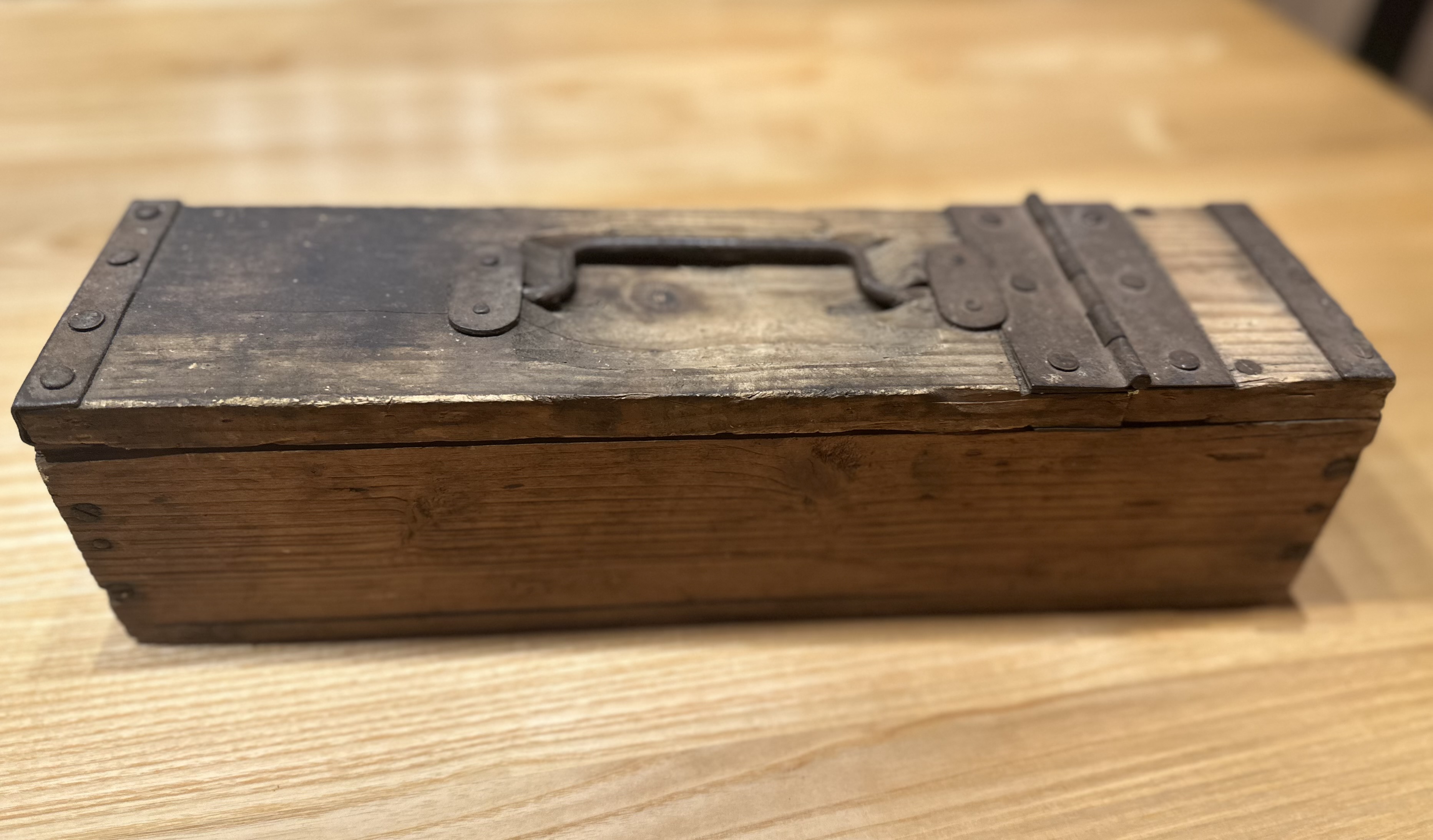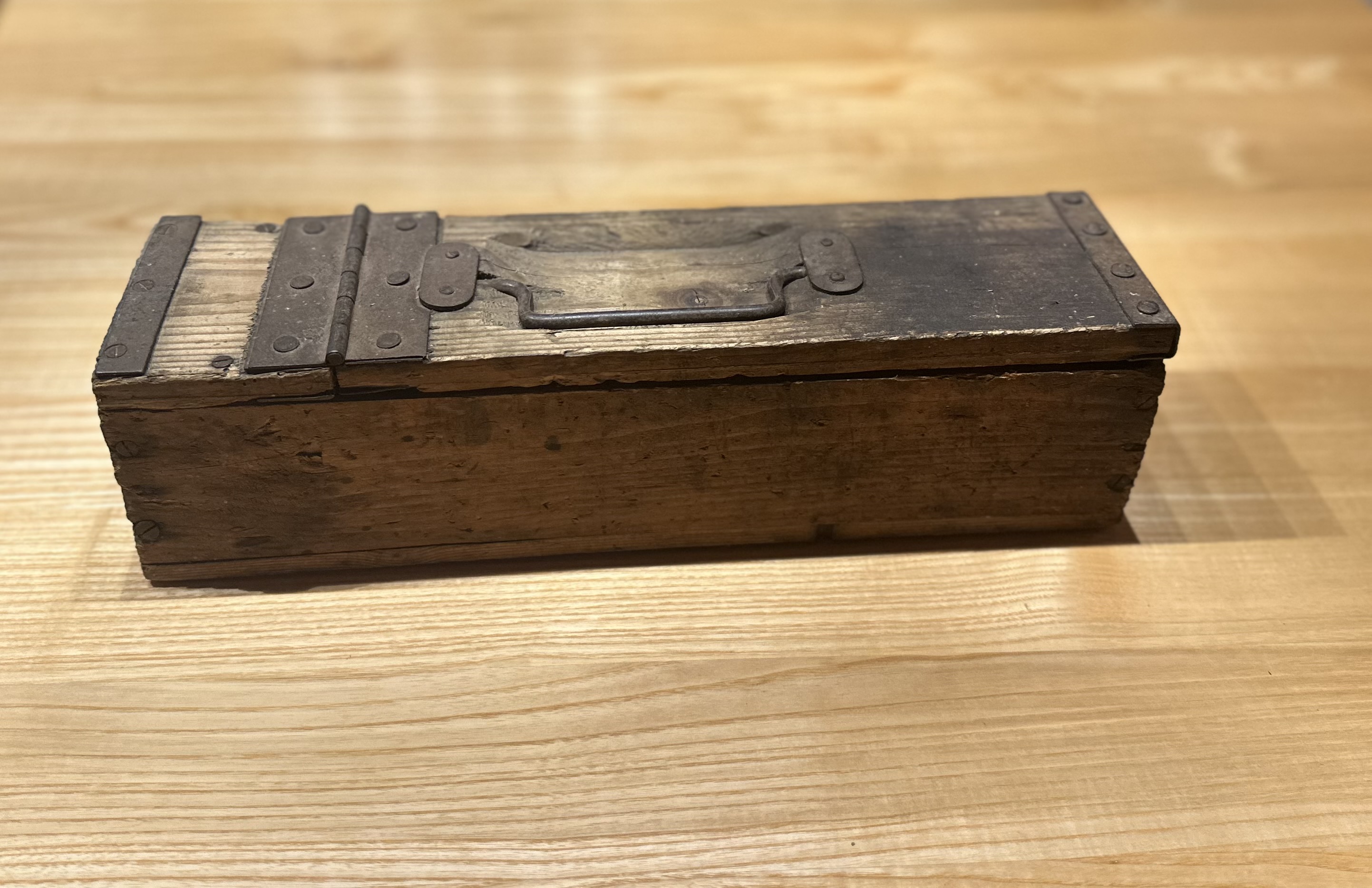 Munitionskiste klein aus Holz, könnte auch vom 2.WK sein! ca. 38 x 10 x 10 cm