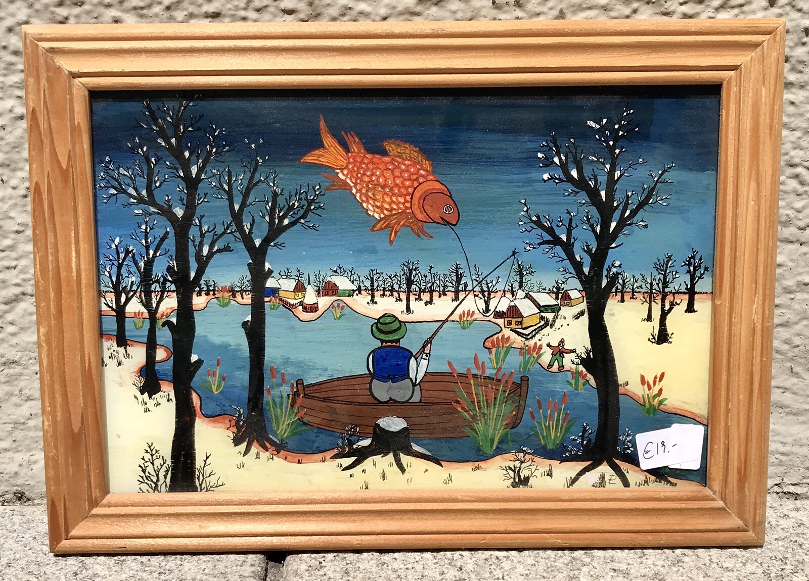 Nostalgie Bild, Fischer, Notiz von 1977, 34,5 x 25cm, (300016)
