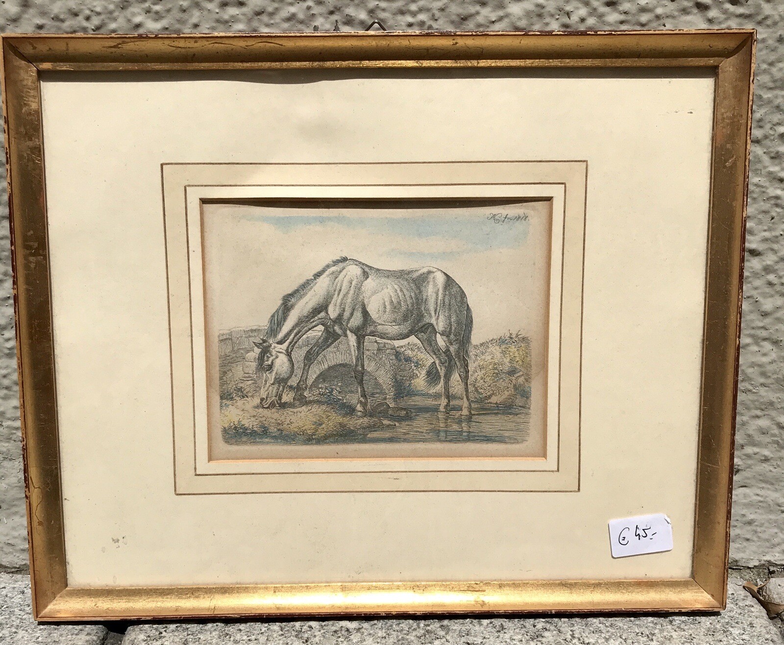 nostalgie bild, Zeichnung 1818, Pferd, Johann Adam, 32 x 26cm (300016)