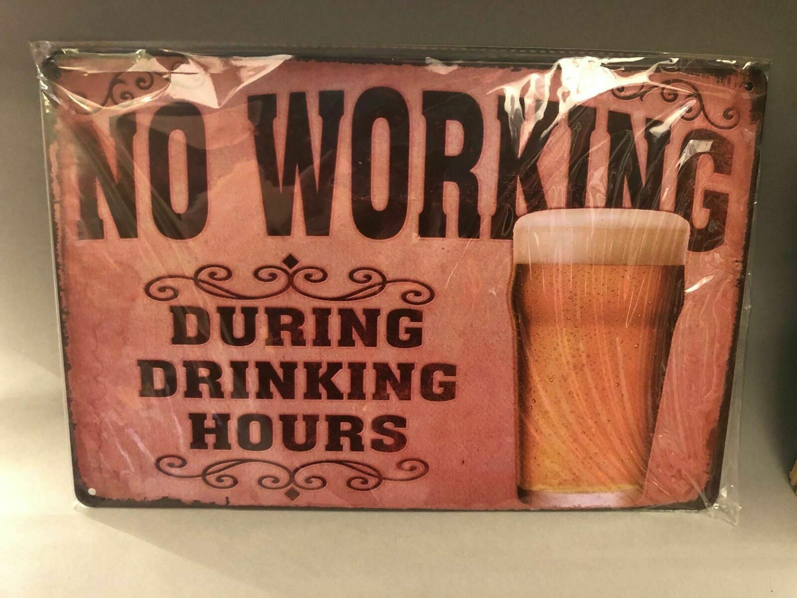 Nostalgie Blech Schild Beer Bier no working during drinking hours 20 x 30 42008
