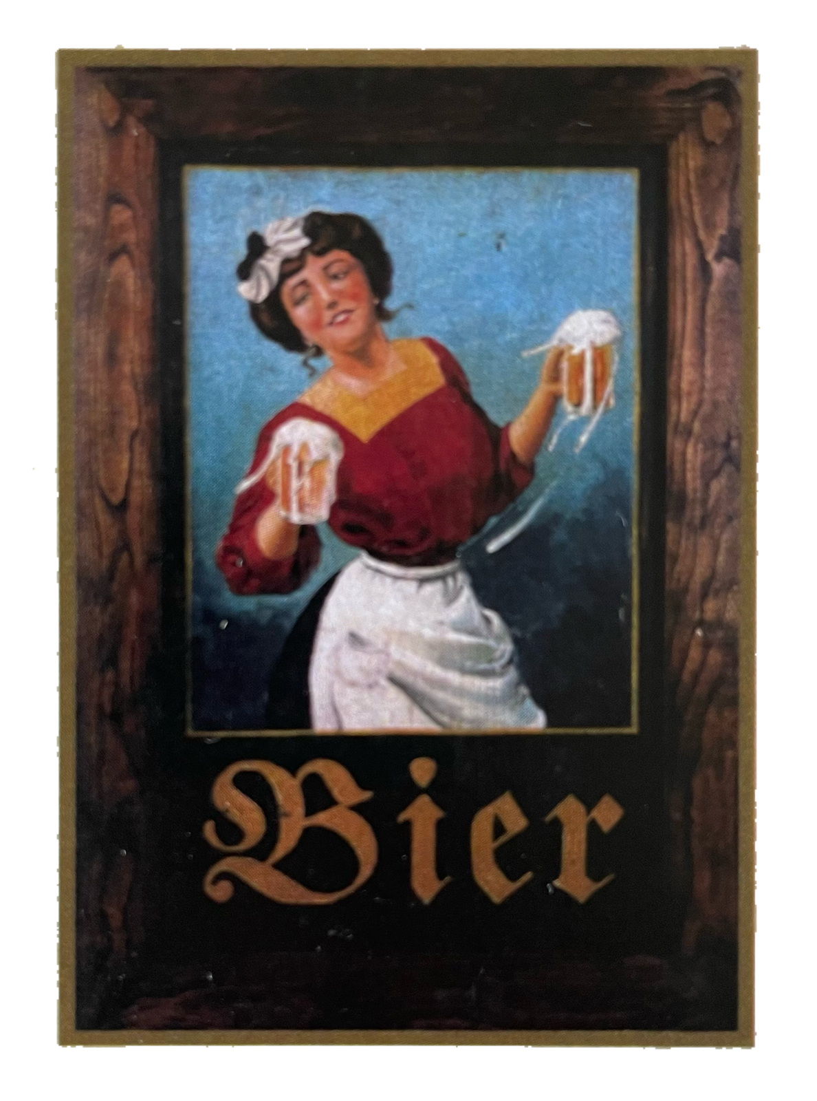 Nostalgie Holzschild Bier Alkohol Wirt Wirtshaus Glas Frau Kellnerin Schild