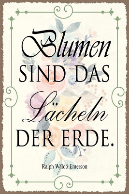 Nostalgie schild blumen lächeln erde zitat 12x18 / 20x30 / 30x40 blech od. holz
