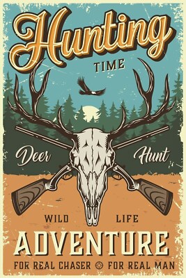 Nostalgie schild hunting time jagd jagen 12x18 / 20x30 / 30x40 blech od. holz