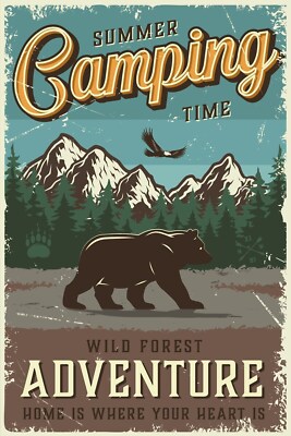 Nostalgie schild summer camping time bär 12x18 / 20x30 / 30x40 blech od. holz
