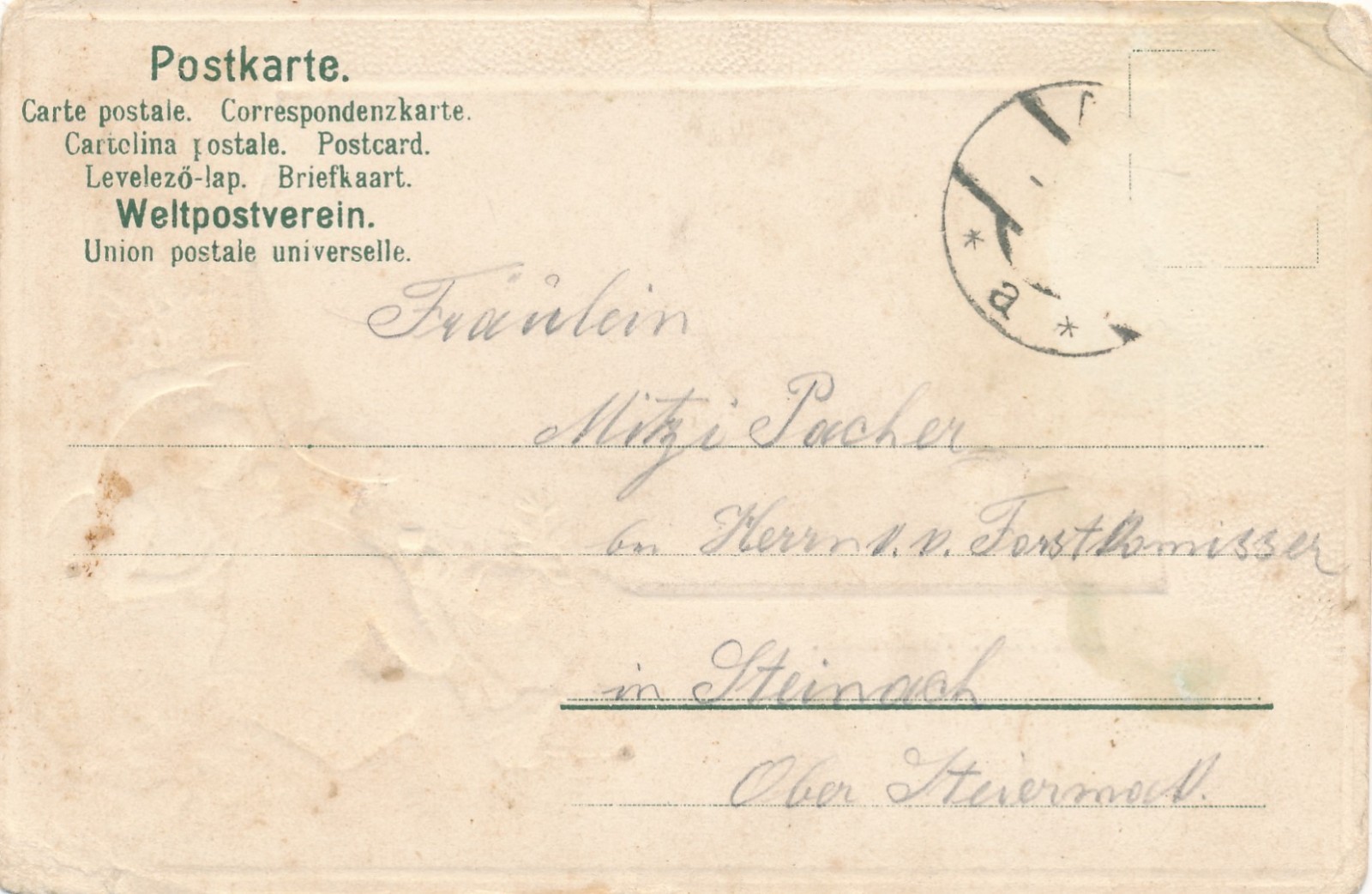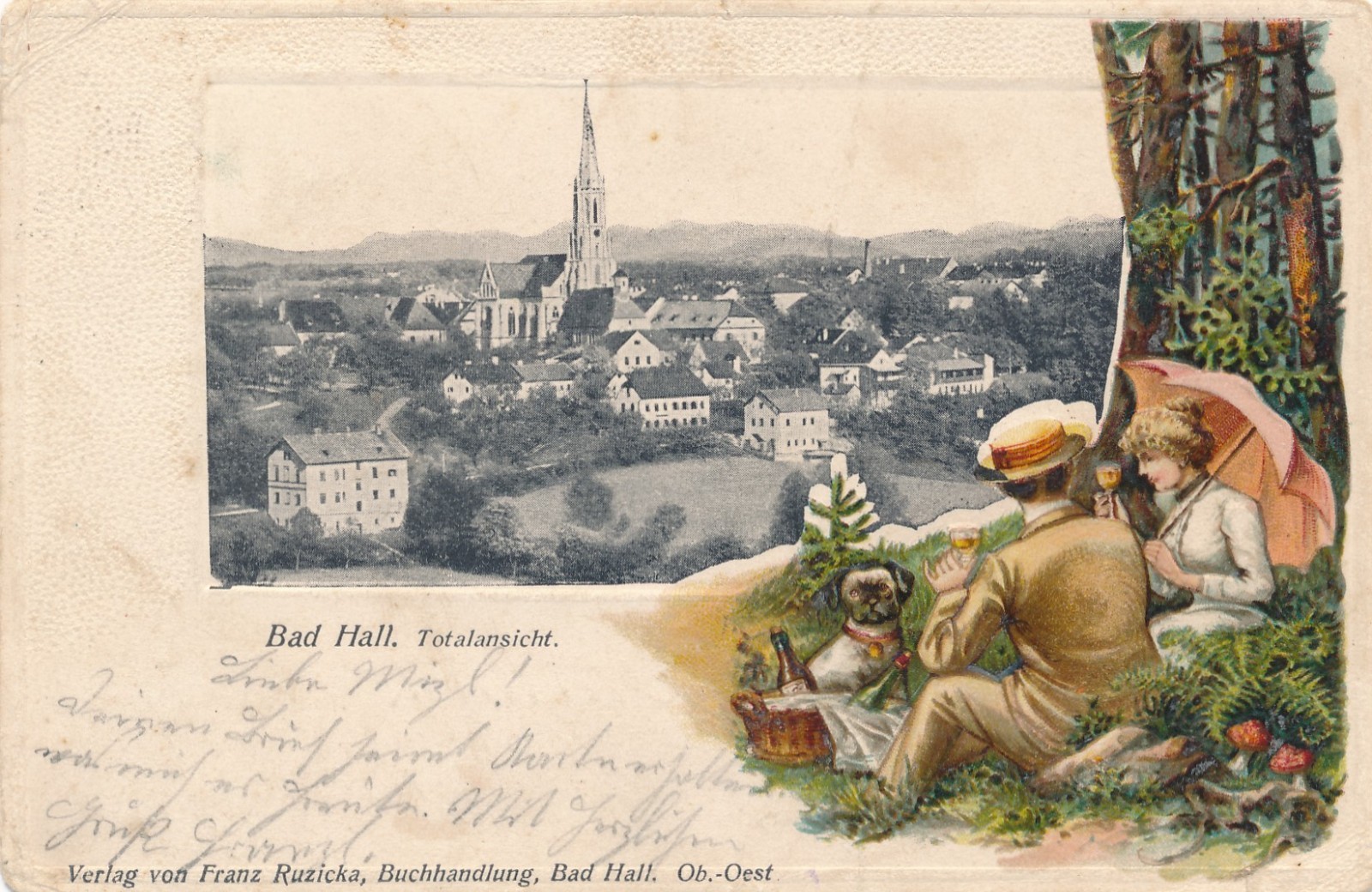 Präge - Karte aus Bad Hall mit Mann Frau und Hund Ansichtskarte (15525)