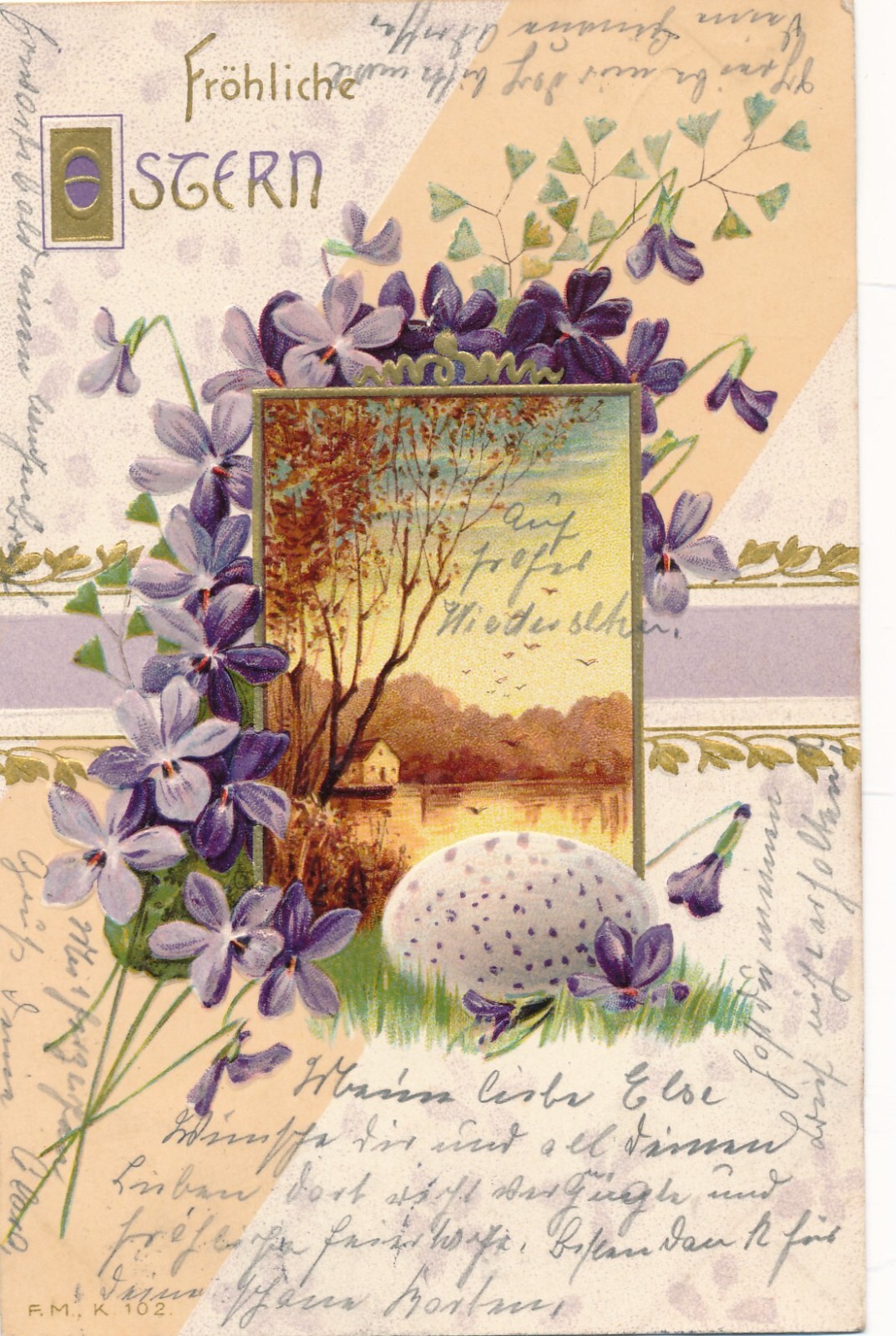 Präge - Motiv - Karte Fröhliche Ostern Ansichtskarte (11475)