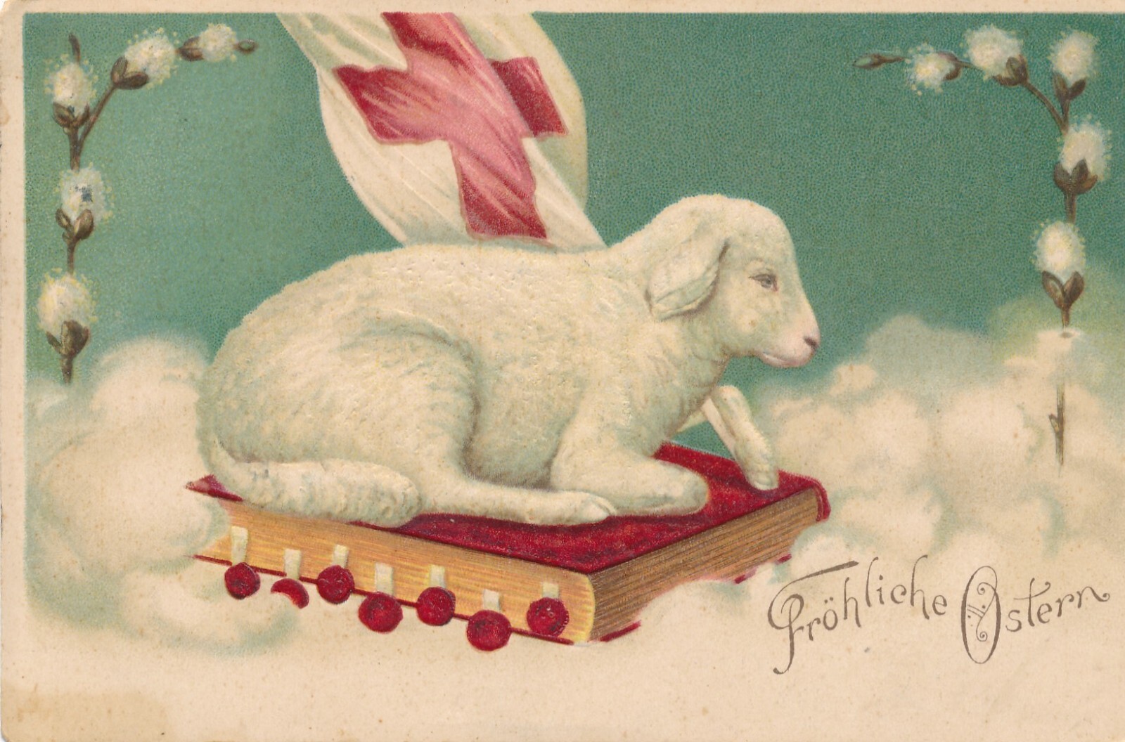 Präge - Motiv - Karte Fröhliche Ostern Schaf mit Fahne Ansichtskarte (11843)