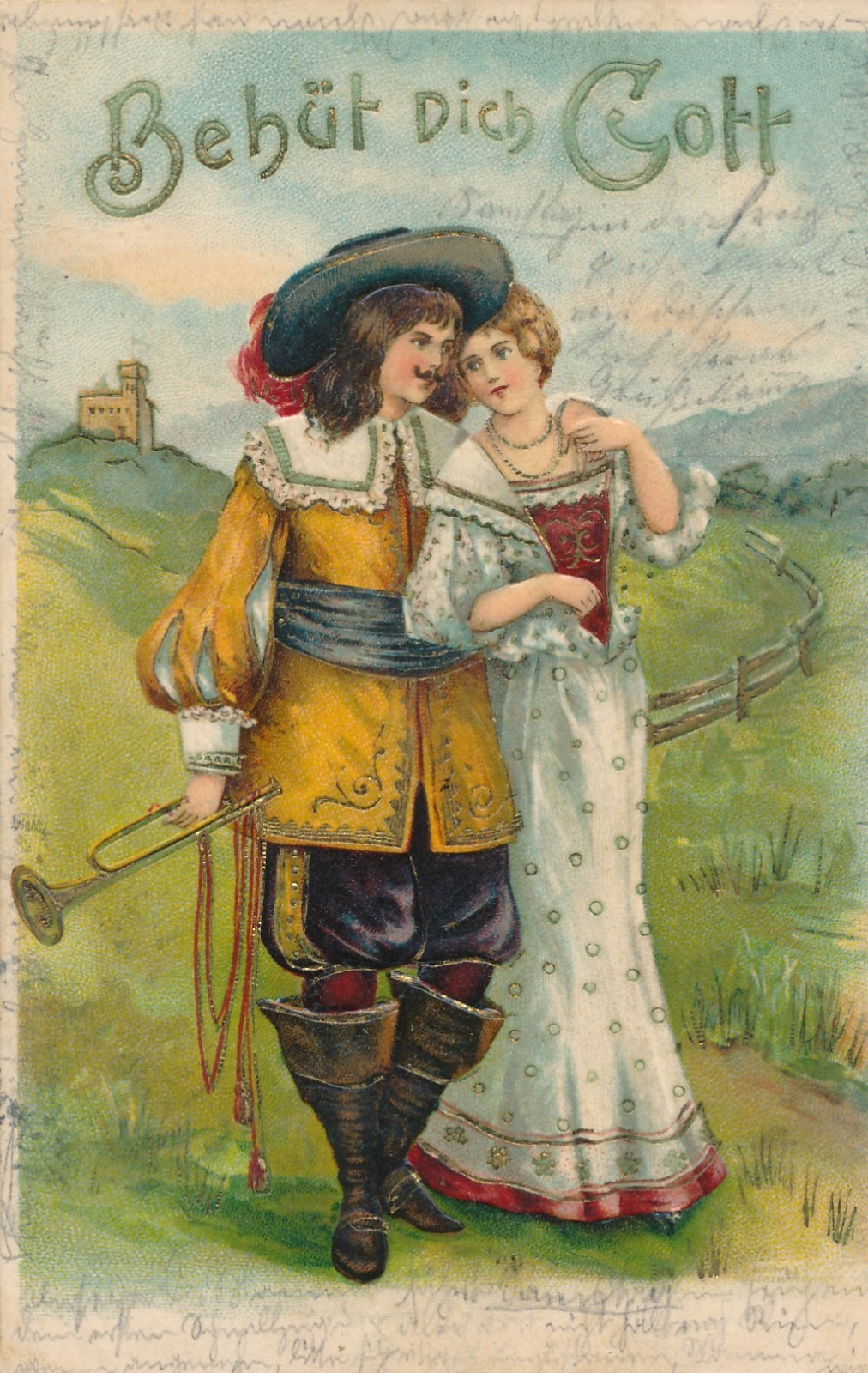 Präge - Motiv Karte Mann mit Frau Behüht dich Gott Ansichtskarte (15890)