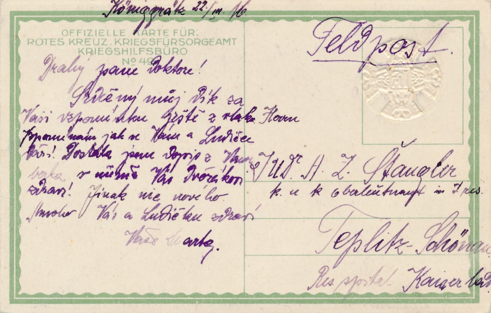 Präge Rot Kreuz Karte Nr.49 Offizielle Kriegsfürsorge (7095)