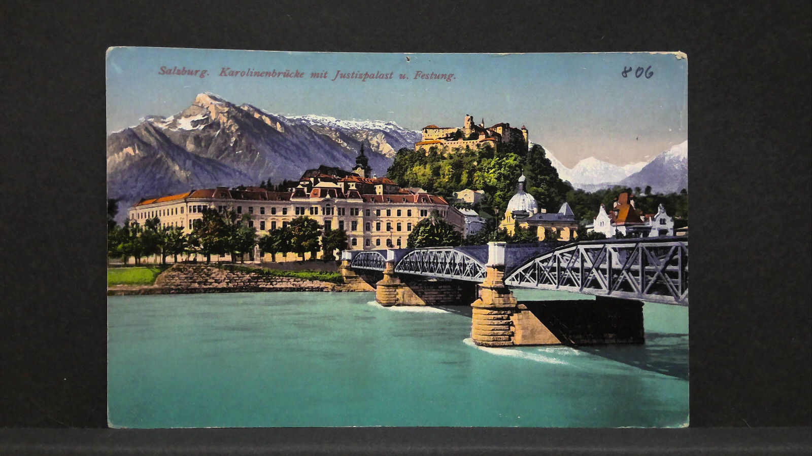Salzburg Karolinenbrücke mit Justizpalast und Festung Hohensalzburg JW165839