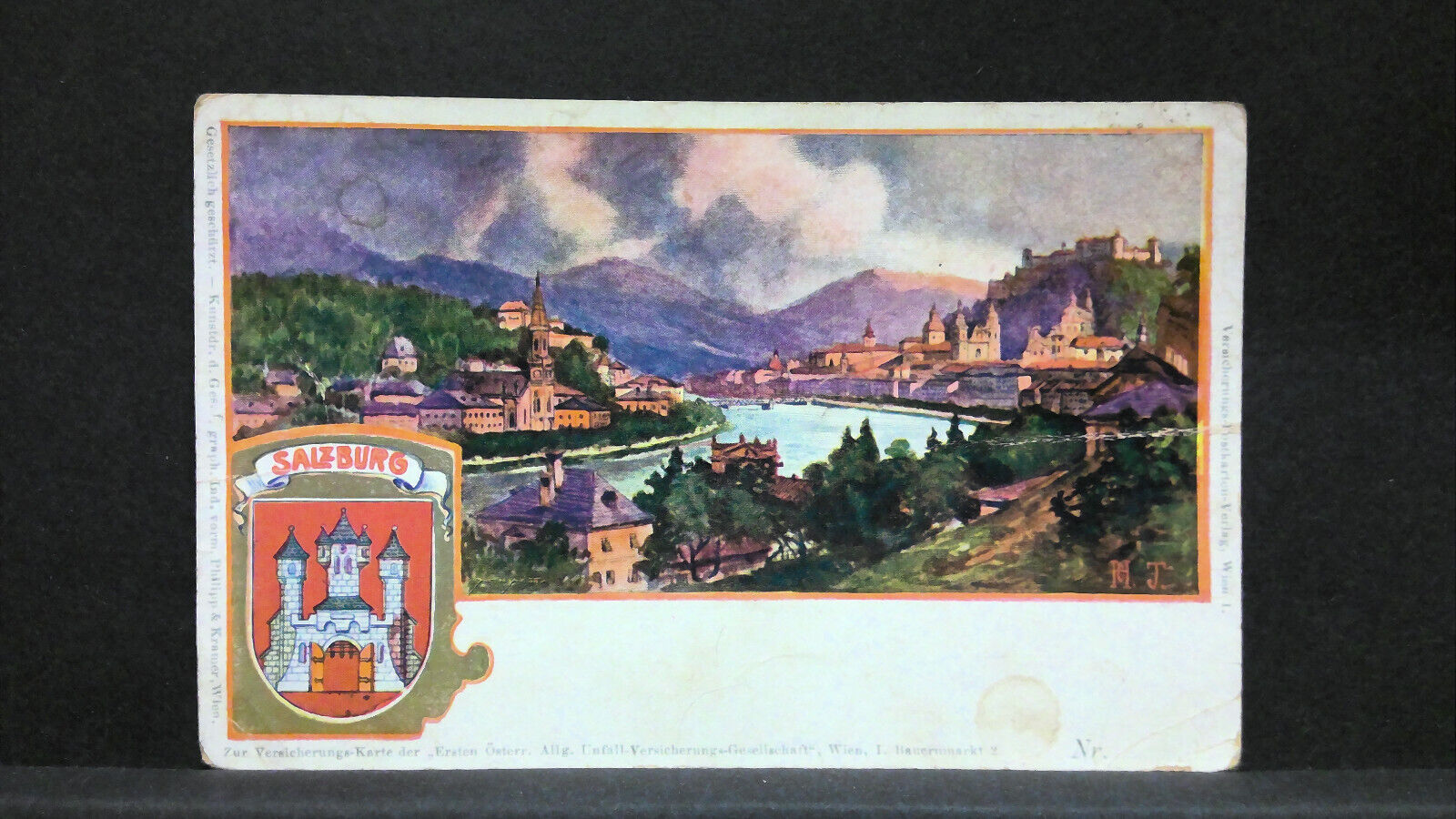 Salzburg Salzach Zeichnung Künstlerkarte JW21541