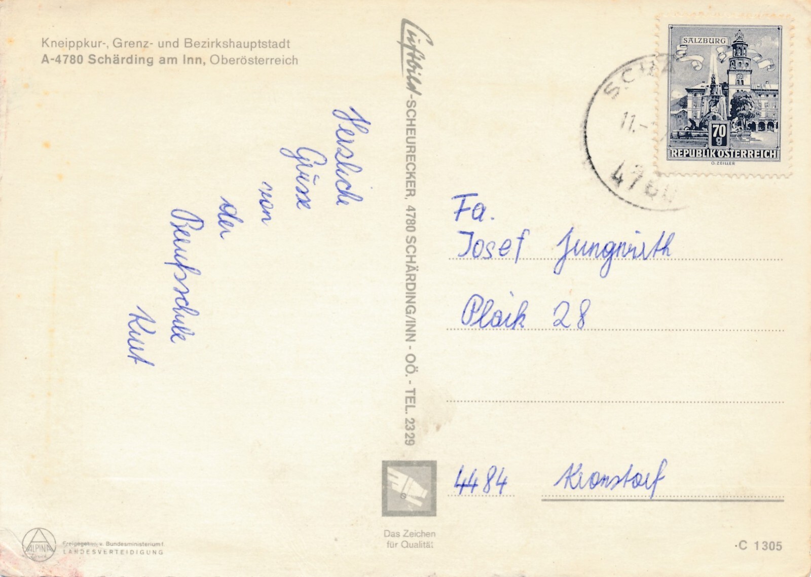Scheurecker - Luftbild aus Schärding am Inn Oberösterreich Ansichtskarte (11554)
