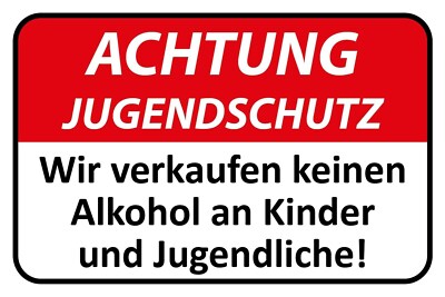 Schild achtung jugendschutz kein alkohol 12x18 / 20x30 / 30x40 blech od. holz