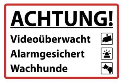 Schild achtung video alarm hunde 12x18 / 20x30 / 30x40 blech od. holz