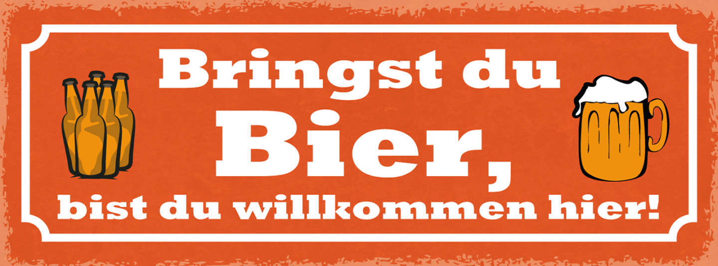 Schild Bringst Du Bier Bist Du Willkommen Hier Alkohol 27x10 Blech od.Holz