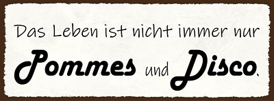 Schild das leben ist nicht immer nur pommes & disco feiern 27x10 blech od.holz
