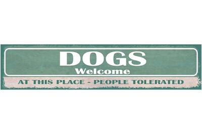 Schild dogs welcome at this place people tolerated hunde willkommen 46 x 10