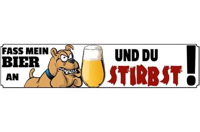 Schild fass bier an stirb alkohol wach hund glas vorsicht 46 x 10 blech od. holz
