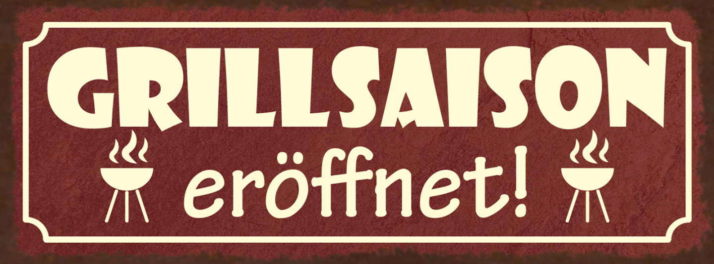 Schild Grill Saison Eröffnet Grillen Griller BBQ Fleisch 27x10 Blech od.Holz