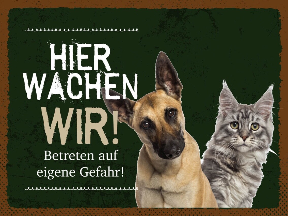 Schild Hier Wachen Wir Hund Katze Gefahr Tier 12x18 20x30 30x40 Blech/Holz