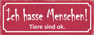 Schild Ich Hasse Menschen Tiere Sind Ok Tier Liebe 27x10 Blech od.Holz