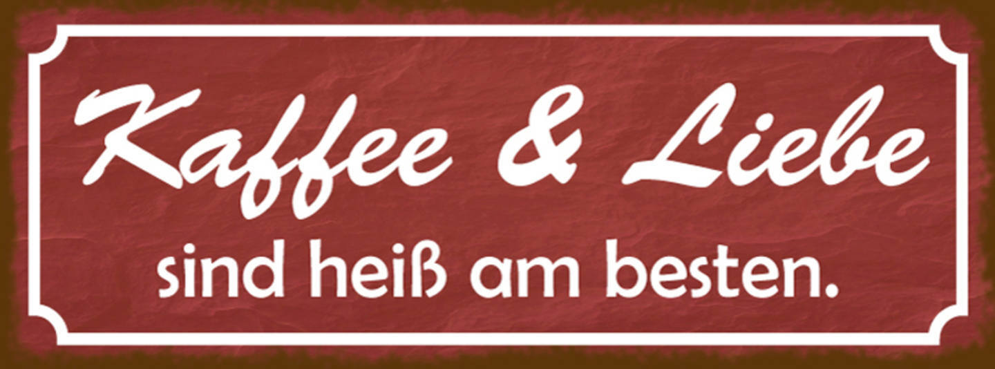 Schild Kaffee & Liebe Sind Heiß Am Besten Cafe Trinken 27x10 Blech od.Holz