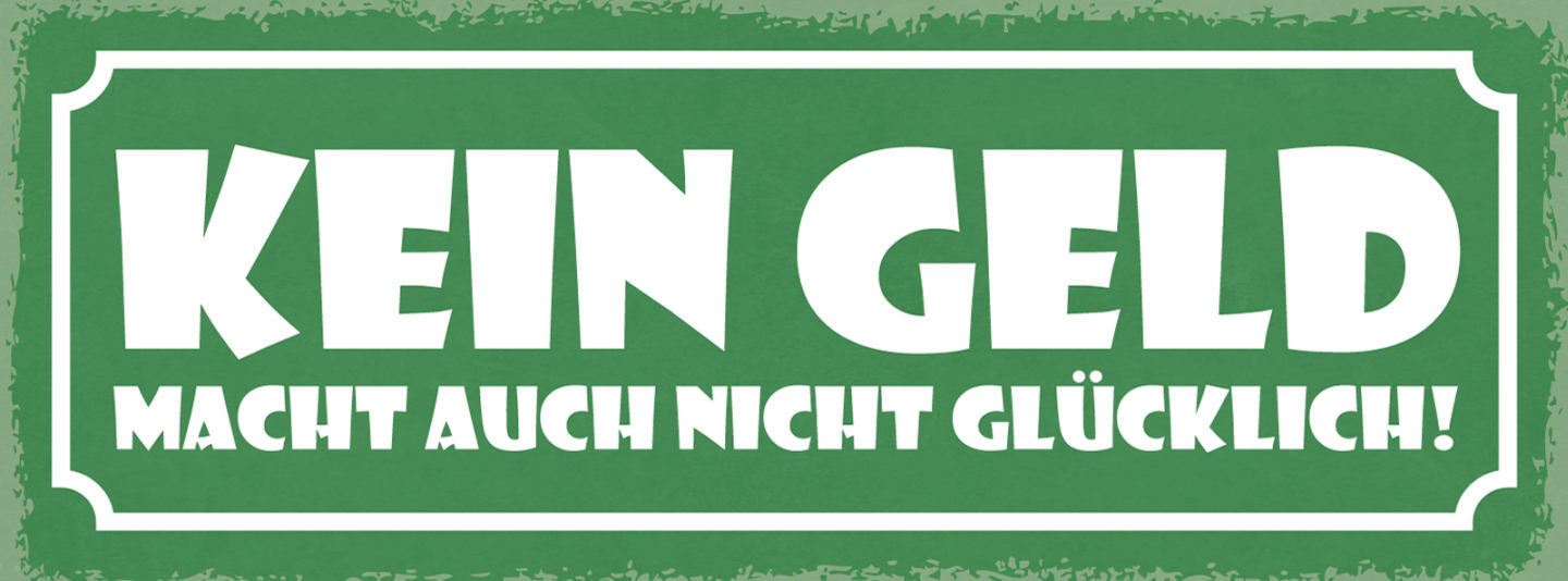 Schild Kein Geld Macht Auch Nicht Glücklich Pleite Leben 27x10 Blech od.Holz