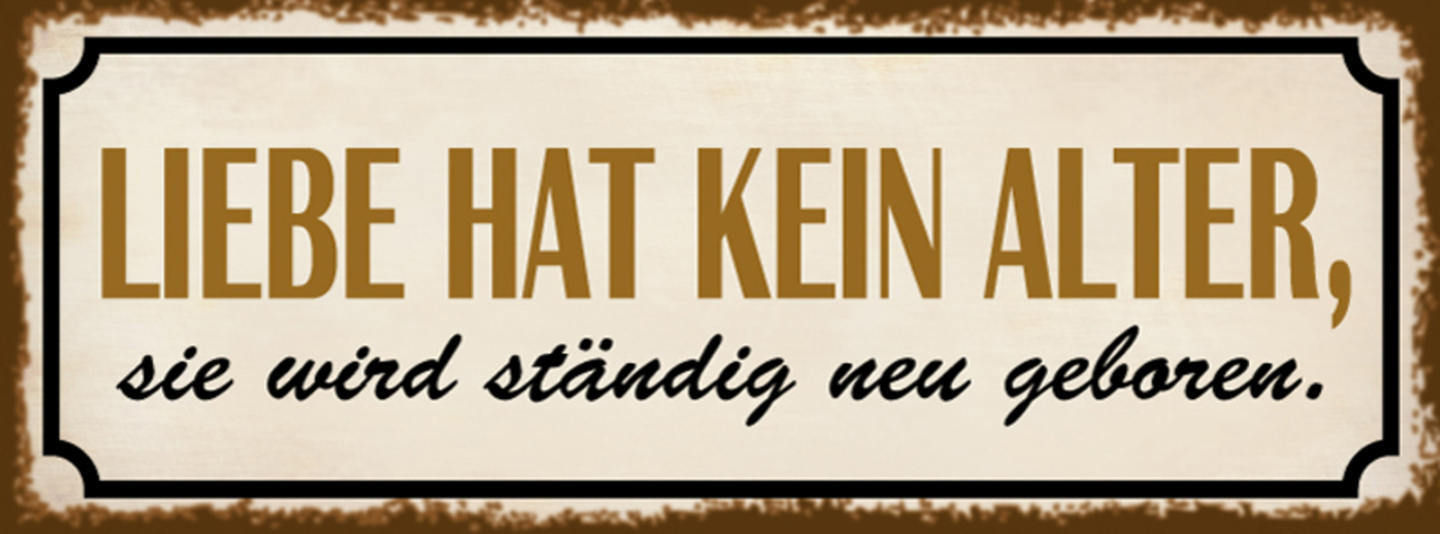 Schild Liebe Hat Kein Alter Sie Wird Ständig Neu Geboren 27x10 Blech od.Holz