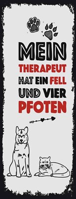 Schild mein therapeut hat ein fell & vier pfoten katze hund 27x10 blech od.holz