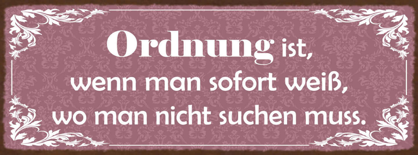 Schild Ordnung Ist Wenn Man Sofort Weiß Wo Man Nicht Suchen Muss Chaos 27x10