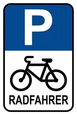 Schild parkplatz radfahrer rad parken 12x18 / 20x30 / 30x40 blech od. holz